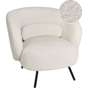 Stijlvolle armstoel met gebogen rugleuning. Deze fauteuil bekleed met bouclé met een speelse textuur is praktisch en ongelooflijk comfortabel, waardoor hij perfect is voor je woon- of slaapkamer.…