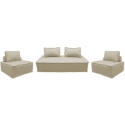 sweeek - Set van 2 fauteuils met 2-zitsbank in stof, met kussen