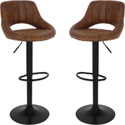 Alora Barkruk Industrial Donkerbruin - Barkrukken set van 2 - Barstoel Kruk - Barstoelen met rugleuning - Keukenstoel
