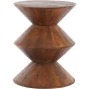 Warme en uitnodigende houten bijzettafel met dubbele zandlopervorm De stoere en warme Larus bijzettafel met een diameter van Ø40 cm steelt de show met zijn unieke dubbele zandloper…