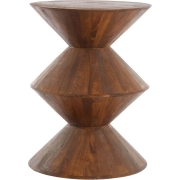 Warme en uitnodigende houten bijzettafel met dubbele zandlopervorm De stoere en warme Larus bijzettafel met een diameter van Ø45 cm steelt de show met zijn unieke dubbele zandloper…