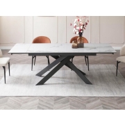 PASCAL MORABITO Verlengbare eettafel 6 tot 10 plaatsen van keramiek en metaal - Wit marmereffect en antraciet - COREMA van Pascal MORABITO L 240 cm x H 76 cm x D 90 cm