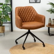 Bronx71 Eetkamerstoel met wieltjes Levi cognac eco-leer -