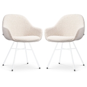 Nolon Noa-Mae Eetkamerstoelen Set van 2 - Bouclé Beige - Witte Poten