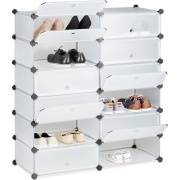 Relaxdays schoenenrek 12 vakken - schoenenkast XXL - groot rek - kunststof - kliksysteem - doorzichtig