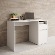 Bureau Babot is een moderne werkplek uitgevoerd volledig in de kleur wit. Het meubel bestaat uit 1 deur, 1 lade en 1 open vak. Achter de deur zit 1 groot opbergvak. De deur en lade zijn greeploos…