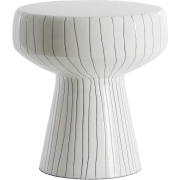 Bijzettafel van keramiek met opvallende witte strepen, functioneel naast de bank of als plantentafel Dit ronde bijzettafeltje Mooca van Light…