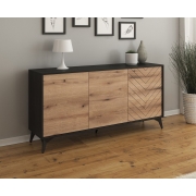 Dressoir Dolores is een moderne opbergkast, uitgevoerd in een eiken kleur met mat zwarte ombouw. De kast beschikt over drie deuren. Achter de deuren bevinden zich 6 opbergvakken. De kast staat op…