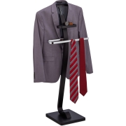 Met dank aan deze dressboy kun je je kleding ophangen zonder dat er kreukels in komen. De zwarte kledingstandaard met zilveren accenten is heel geschikt voor zakelijke outfits. Over de brede…