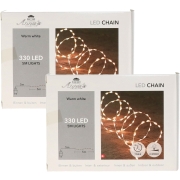 2x draadverlichting lichtsnoer met 330 LED lampjes. Het zilverkleurige draad is flexibel en de lampjes geven een sfeervol warm wit licht. De verlichting is geschikt voor binnen en heeft een…
