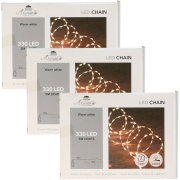 3x draadverlichting lichtsnoer met 330 LED lampjes. Het zilverkleurige draad is flexibel en de lampjes geven een sfeervol warm wit licht. De verlichting is geschikt voor binnen en heeft een…