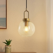 Messing hanglamp Nalian met bolvormige glazen kap De hanglamp Nalian is gemaakt van ijzer en glas, waardoor een heel bijzondere mix van materialen een harmonieuze eenheid vormt. De ronde…