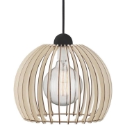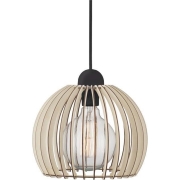 Hanglamp in grafisch design, met een kap bestaande uit houten latten die zorgen voor een aangename lichtverdeling. Wanneer de lamp zichtbaar is tussen de lamellen, is het aan te raden de lamp te…