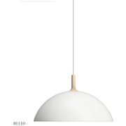 Moderne hanglamp van het Deense merk Halo design. Mooi vormgegeven halve bol van aluminium met een beugel van eikenhout. Door het lange met stof omwoven snoer is de lamp in verschillende hoogtes…