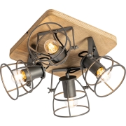QAZQA Industriële spot hout met donkergrijs verstelbaar 4-lichts -