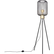 QAZQA Industriële vloerlamp zwart met goud 1-lichts - Tommy