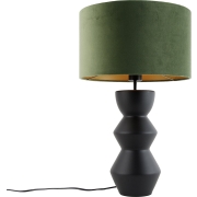 QAZQA Design tafellamp zwart 16 cm velours kap groen met goud 35 cm -