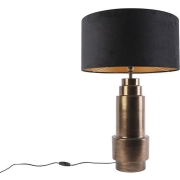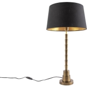 QAZQA Art deco tafellamp brons velours kap zwart met goud 50 cm -