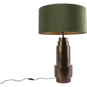 QAZQA Tafellamp brons velours kap groen met goud 40 cm - Bruut