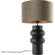 QAZQA Design tafellamp zwart 17 cm velours kap taupe met goud 35 cm -