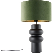 QAZQA Design tafellamp zwart 17 cm velours kap groen met goud 35 cm -