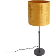 QAZQA Tafellamp zwart velours kap goud 25 cm verstelbaar - Parte