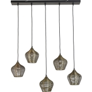 Een antiek bronzen hanglamp met 5 lichtpunten van metaal Perfect voor boven je eettafel, de Alvaro hanglamp in antiek brons heeft vijf geweven metalen lampenkappen. Dit ontwerp met een…