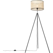 QAZQA Landelijke vloerlamp tripod zwart met rotan kap - Kata