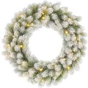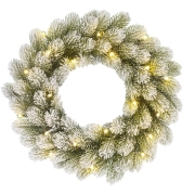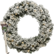 Kerstkrans 60 cm - groen met led - besneeuwd - met hanger/ophanghaak -
