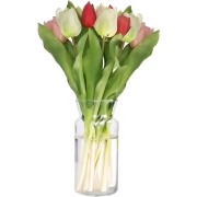 Bellatio Design tulpen boeket Vermeer, in de kleur roze/creme. Breng een beetje voorjaar in huis met deze prachtige niet van echt te onderscheiden tulpen, met een prachtige mix van open en dichte…
