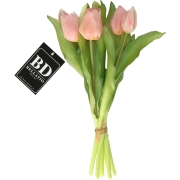 Bellatio Design tulpen boeket Sally, in de kleur lichtroze. Breng een beetje voorjaar in huis met deze prachtige niet van echt te onderscheiden tulpen. Het bosje bestaat uit 7x kunststof Real…