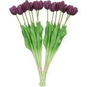 Kunst tulpen boeket - 10x stuks - donker paars - real touch - 39 cm -