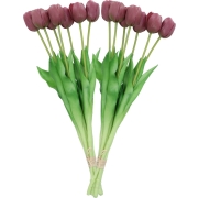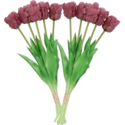 Kunst tulpen boeket - 10x stuks - aubergine paars - real touch - 39 cm -