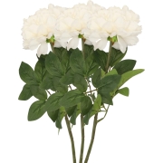 Kunstbloemen boeket pioenroos in de kleur wit. Deze roos heeft 1 bloem met een doorsnee van 15 cm. en heeft 3 sets bladeren van ca. 21 stuks. Dit boeket bestaat uit 8 stelen en bloemen. Zet deze…