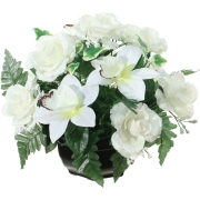 Kunstbloemen kunstplantje orchidee/rozen in pot in kleuren creme/wit met een hoogte van ongeveer 25 cm. Combinatie van kleuren creme/wit met bladgroen. Bloemenstuk tafel ornament. Zeer realistisch…