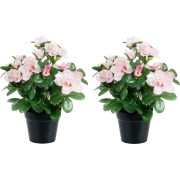 Azalea Kunstbloemen - 2 stuks - in pot - wit/roze - H25 cm -