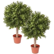 2x Buxus bol kunstplanten op stam in pot 35 cm -