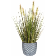 Kunstplant groen rietgras sprieten 45 cm in een luxe stijl-motief structuur bloempot/plantenpot in de kleur blauw. De keramiek bloempot uit de Daan serie heeft afmetingen D12 en H11 cm. Voor…