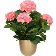 Hortensia kunstplant/kunstbloemen 45 cm - roze - in pot goud glans -