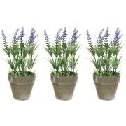 4x stuks groene/paarse Lavandula/lavendel kunstplanten 25 cm in beton pot -
