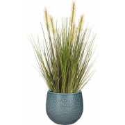 Kunstplant groen rietgras sprieten 45 cm in luxe Gabriel ribbel bloempot blauw -