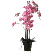 Orchidee bloemen kunstplant in het roze. Behoorlijk grote plant met afmetingen H97 cm en B19 cm. Zeer realistisch uitziende, onderhoudsvrije/onderhoudsarme kunstplant in een zwarte zware plug.…