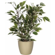 Groen/witte ficus kunstplant 40 cm met plantenpot van keramiek in de kleur parelgoud D13.5 en H12.5 cm. Zeer realistisch uitziende, onderhoudsvrije/onderhoudsarme kunstplant. Materiaal: kunststof/…