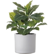 Groene Philodendron kunstplant van ongeveer 49 cm in een keramiek bloempot/plantenpot in de kleur wit Dia 15 cm/Hoogte 13 cm. De mooie stijlvolle bloempot is glanzend met een ribbel-motief uit de…