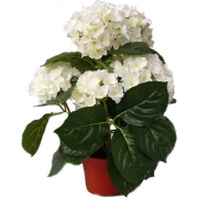 Mooie kunstplant met bloemen - Hortensia - wit - H36 cm - Dia 10 cm -