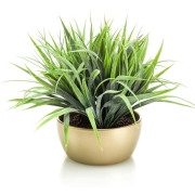 Grasstruik kunstplant 33 cm in gouden pot. Een mooie, realistisch uitziende plant, in een goudkleurige pot. Geschikt voor binnenshuis. Totale hoogte: ca. 33 cm. Materiaal plant: kunststof.…