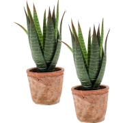 Set van 2x stuks Aloe Vera kunstplanten in terracotta pot 23 cm -