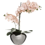 Orchidee bloemen kunstplant in zilveren bloempot - roze bloemen - H57 cm -