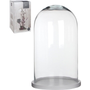 De glazen bel is 34 cm in hoogte (incl. de basis) en heeft een totale basis diameter van 26x15 cm. De binnen diameter van het glas is 23x12 cm en hoogte van het glas is 28 cm. …