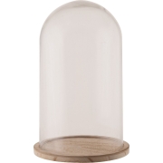 Glazen decoratie stolp op houten plateau - D18 x H28 cm - Home Deco stolpen - Woonaccessoires -